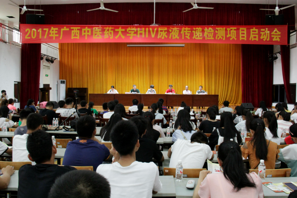 9月29日上午,2017年taptap点点体育HIV尿液传递检测项目启动会在小礼堂举行。中国性病艾滋病防治协会秘书长王新伦、taptap点点体育党委副书记董塔健、原广西壮族自治区疾病预防控制中心主任唐振柱、广西性病艾滋病防治协会副会长兼秘书长黎学铭、南宁市青秀区疾病预防控制中心中心主任黄中学出席会议,点点体育师生代表300余人参加会议,校团委书记王春花主持会议。