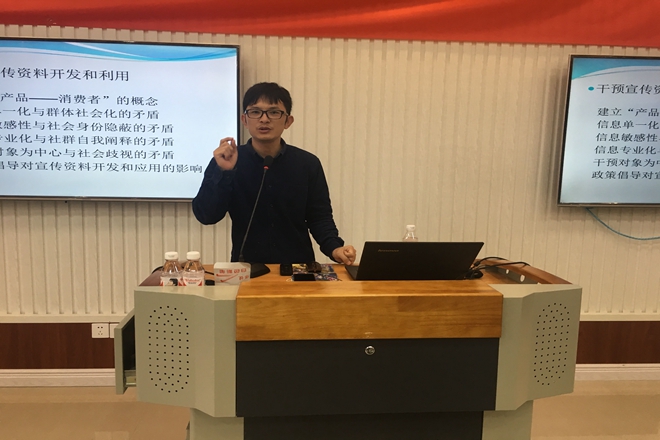 培训会上,陈晓东老师围绕“干预基本理论”与“社会行为学理论”进行细致的讲解。随后,陈晓东老师以自己的亲身经历为素材指导志愿者如何以更容易让广大群众接受的方式进行宣传。最后,老师为志愿者们对干预的形式进行了举例讲解与说明。通过开展本次培训,让志愿者们明白了理论是实践基础的重要性,同时,也让志愿者们明白针对不同人群如何宣传才能取得更好的效果。