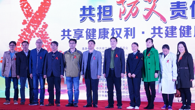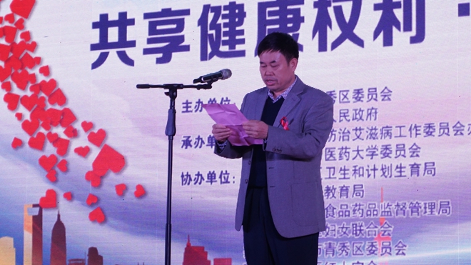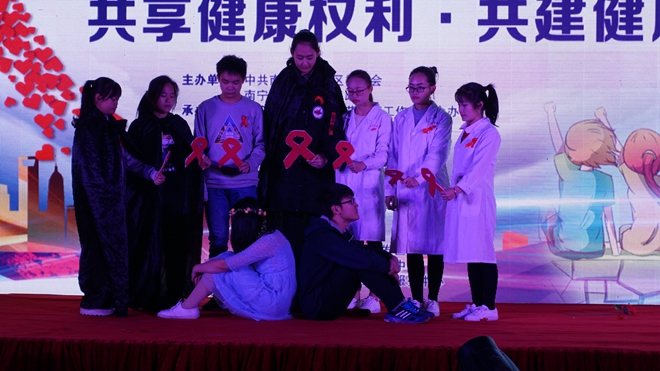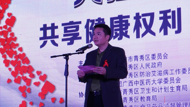 宣传活动上,南宁市青秀区人民政府杨华龙副调研员发表了讲话,他说:目前,青秀区艾滋病的形势严峻,新报告的学生病例数上升明显,学校性教育缺失、艾滋病预防知识匮乏成为学生艾滋病感染率上升的主要原因,防治工作迫在眉睫,刻不容缓。青年作为构成未来社会建设的主要群体,具有思想活跃、进取意识强、知识水平和接受能力较高的特点,青年们理应是防治艾滋病、关爱艾滋病病毒感染者和病人、清除歧视等理念和活动的倡导者和实践者。艾滋病防治工作不仅是政府的一项攻坚工程,也是关系到每一位老百姓幸福生活的群众行为。我们每一个人都应该自觉的加入到保持防治艾滋病的行动当中,创造属于自己的幸福人生。