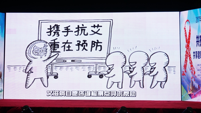 工作人员在现场发放艾滋病防治宣传资料,提高在校师生对艾滋病预防的认知。活动现场还设置宣传展板,宣传对艾滋病的正确认知和艾滋病的危害以及有效的预防措施。晚会由暖场音乐及防艾知识宣传片,精彩纷呈的开场舞蹈《走在山水间》,有奖问答,惊险刺激的单车杂技,引人入胜的小品《花落》,趣味横生的魔术互动,大学生志愿者舞蹈《月亮海》8个环节组成。现场气氛活跃,宣传效果显著。既让学生更加了解国家对艾滋病防治工作的政策、措施,又丰富和增强了学生们的艾滋病防治知识、防治意识和自我保护能力,为遏制艾滋病的传播蔓延起到了积极作用。本次活动受到老师同学们的极大肯定,活动圆满结束。