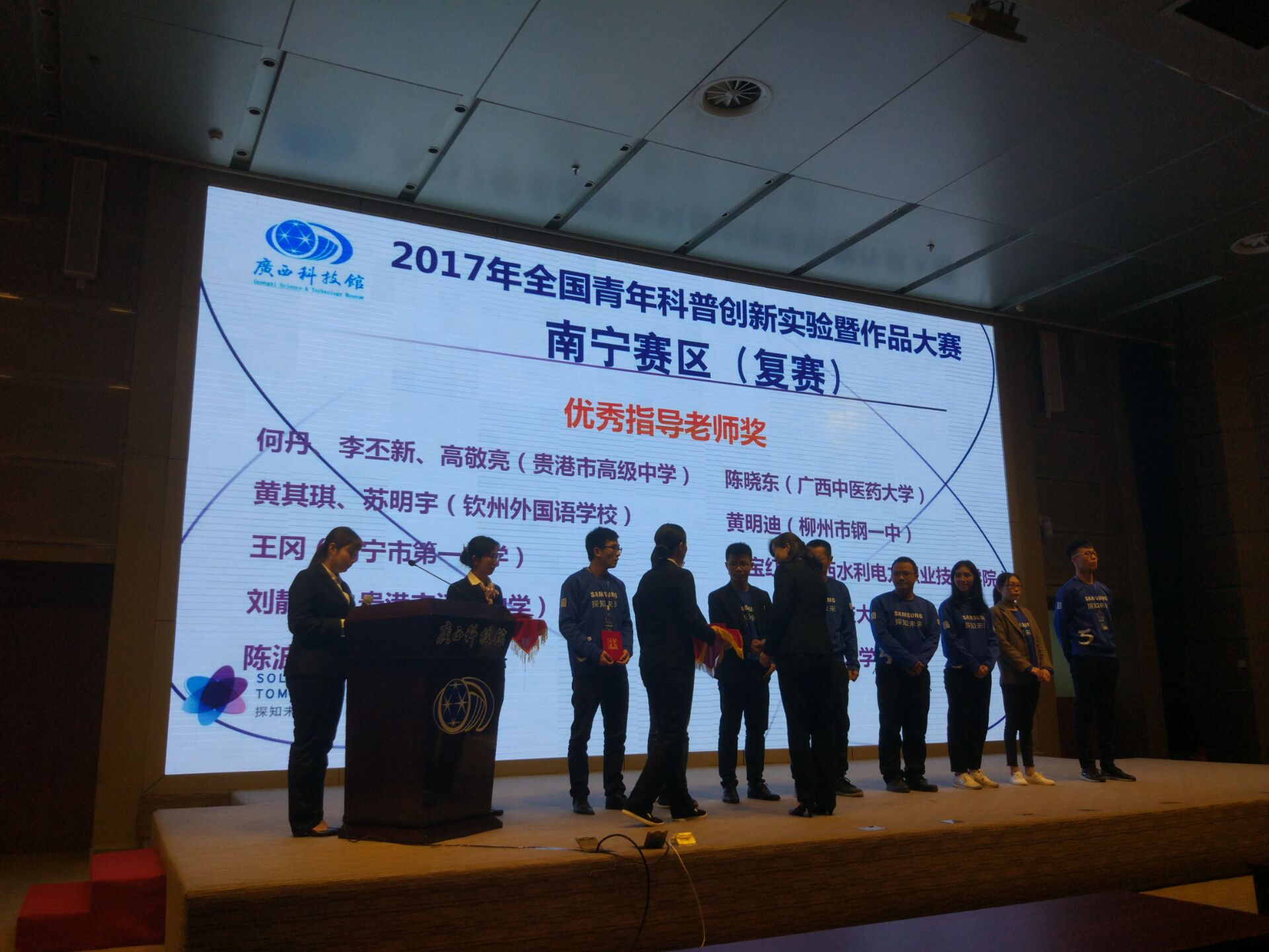 2017年全国青年科普创新实验暨作品大赛以“SOLVE FOR TOMORROW探知未来”为主题,南宁赛区历时两个月,自9月份开赛以来共有3808个项目团队报名参赛,根据成绩排名及专委会审核,最终37支队伍进入现场复赛。经过激烈角逐,来自南宁、柳州、贵港等地的5支队伍脱颖而出,晋级全国决赛。
