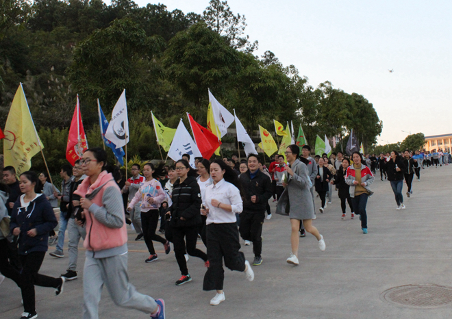 2017年12月19日,由社联主办、各校级社团参与的以“学思践悟十九大,黄大年精神伴我行”为主题的环校长跑活动于点点体育仙葫校区篮球场成功举行。校团委办公室、社会实践部(合署)干事黄英老师出席本次活动。