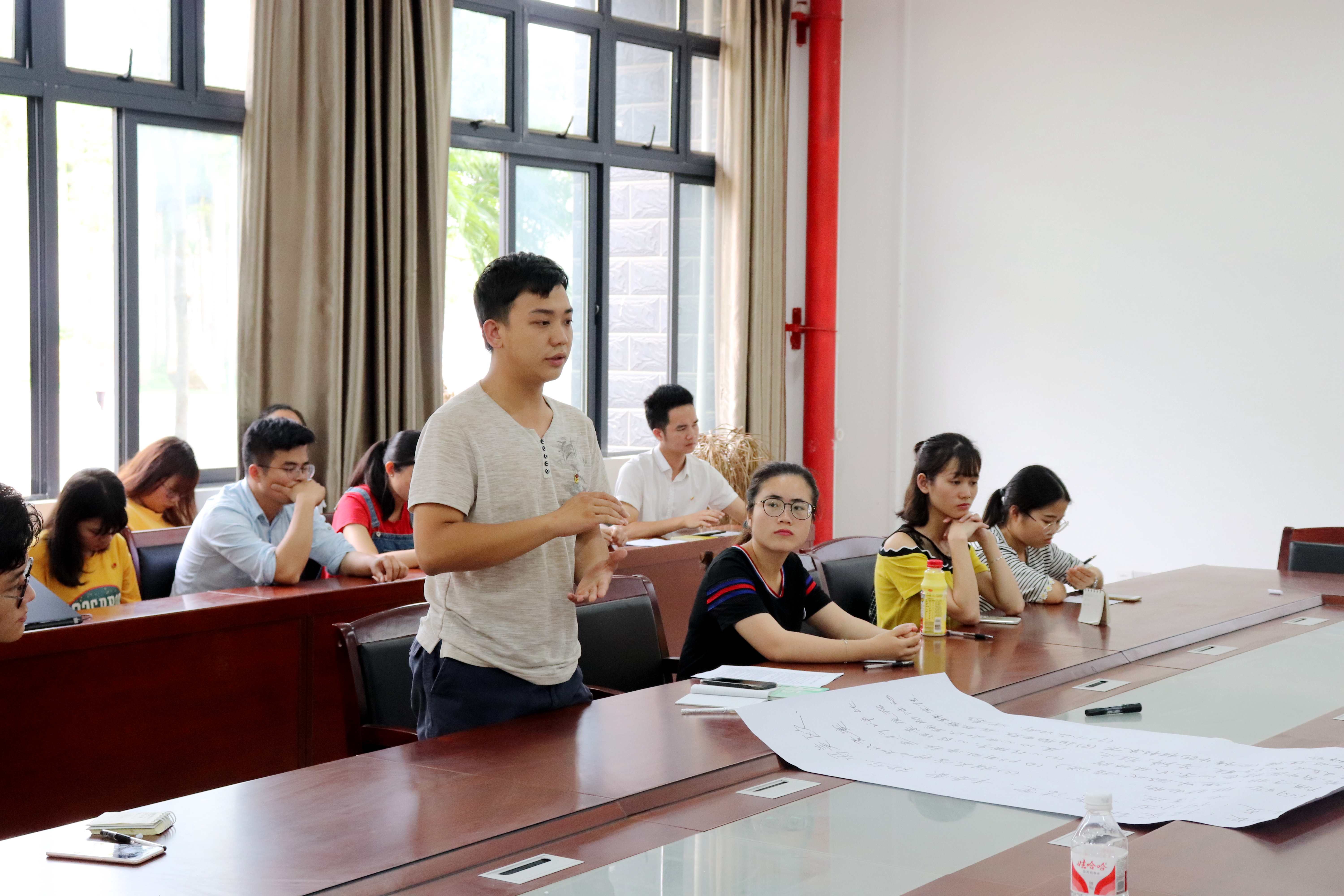 团支书们进行分组,每个小组针对团日活动、三会两制一课、组织生活会等五个问题展开激烈讨论,发表自己的看法。其中一个小组的同学提出团日活动可以结合本专业的知识开展相应的活动,比如ps制图、中草药辨识、在心理素质拓展中心开展活动等。活动前,可以通过网络宣传等形式让同学们了解团史团情。