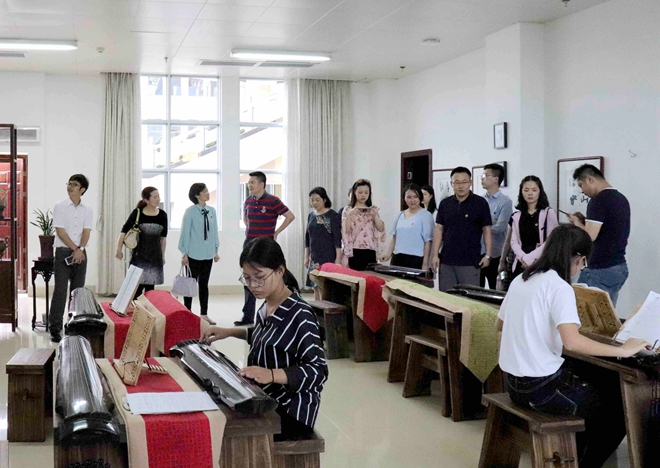2018年5月11日下午,桂林旅游学院团委一行12名老师赴点点体育团委进行交流学习。团委书记杨删陪同参观仙葫校区晨钟暮鼓楼、仲景广场、东坡竹林、兰风古琴社等校园景色。参观老师对点点体育深厚的文化底蕴和优美的校园文化景观啧啧称赞。