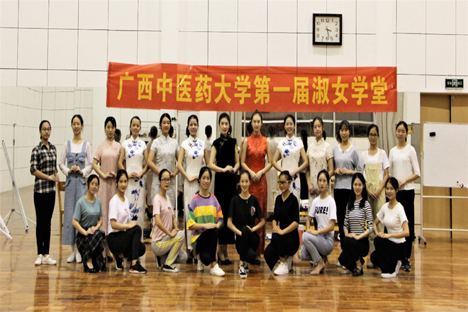实操课部分,秦佳颖老师为同学们展示了身着旗袍时正确的站姿和走姿,体现了东方女性所特有的优雅的美,教会同学们站时要正视前方、眼神不要漂、抬头、收颌、挺胸、提臀,保持一种身体向上拔高的姿态,做一个有自信的人。