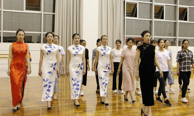 老师在为同学们讲解旗袍理论