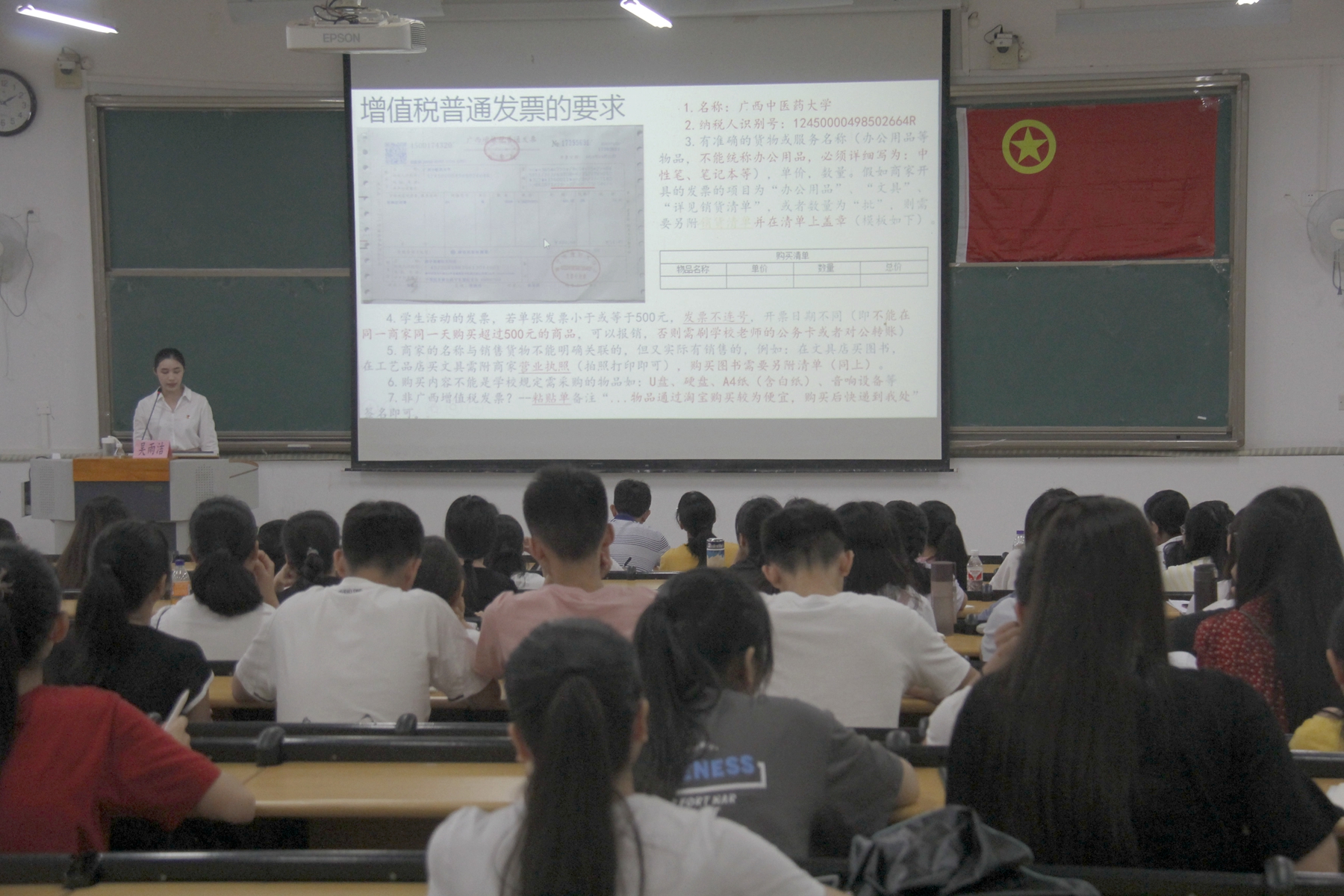 校团委学生团务管理中心副主任吴雨洁为各团队人员介绍报账攻略,细致讲解了财务报账要求、各类票据注意事项、冲账流程以及各类发票禁忌,提醒各团队人员需要注意的事项与细节,避免报账出错造成不必要的麻烦。