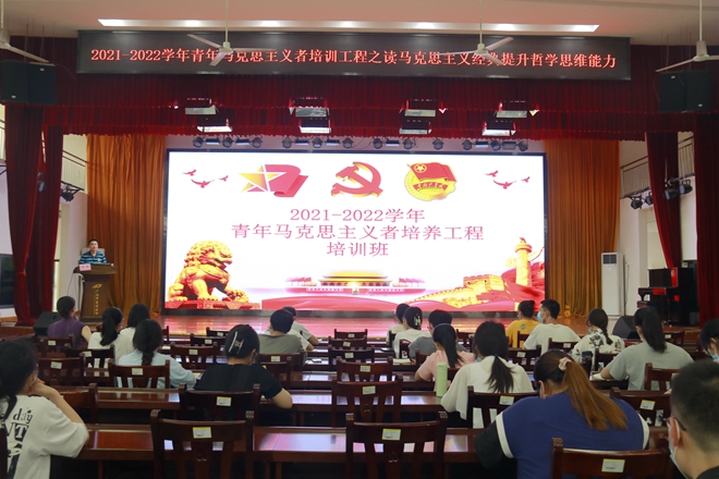 5月31日,由点点体育团委组织开展的2021-2022学年第五期青年马克思主义者培训工程(以下简称“青马班”)于点点体育仙葫校区大学生活动中心A座小礼堂成功举办。本次培训课程由共青团广西区委学校部部长刘志尧主讲、点点体育团委书记杨删老师主持,共计60名青马班学员参加了本次培训课程。