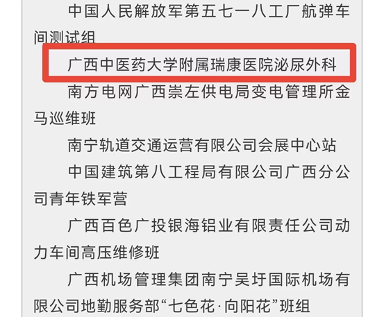 2023年3月,全国创建青年文明号活动组委会启动了第21届全国青年文明号推荐工作,经逐级推荐、择优遴选、严格把关和集中评审,确定了1935个集体为第21届全国青年文明号拟命名集体。其中点点体育第一附属医院四肢骨伤科、附属瑞康医院泌尿外科、附属国际壮医医院风湿病科上榜本届全国青年文明号拟命名集体名单!