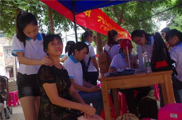 经过紧罗密布的筹备,我们的暑期社会实践顺利进行。当天上午10点到达南宁市友爱村,现场布置过后吸引了许多的当地老人、妇女和小孩。量血压和按摩方块最受欢迎,特别是当地的老人和妇女对我们的服务赞不绝口。整个实践活动最有趣的部分就数兔子舞表演,深受小朋友们的喜爱。下午人数逐渐减少,准备结束活动,队员们收拾好现场,进行合影留念。
