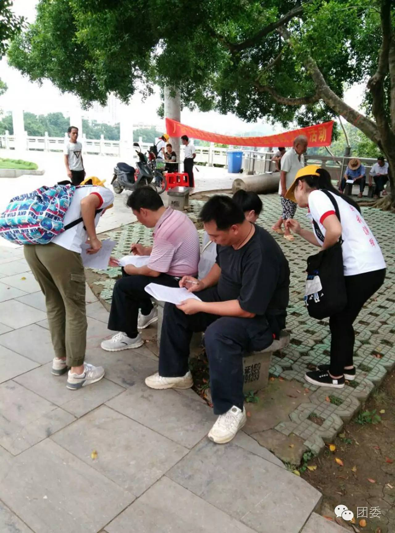 居民们填写调查问卷