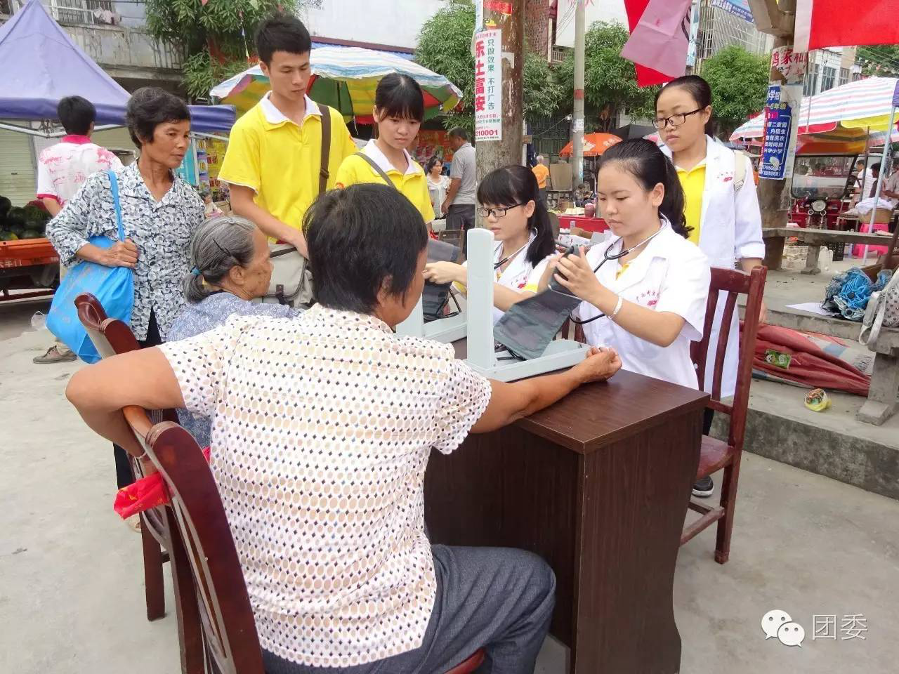 志愿者为村民量血压