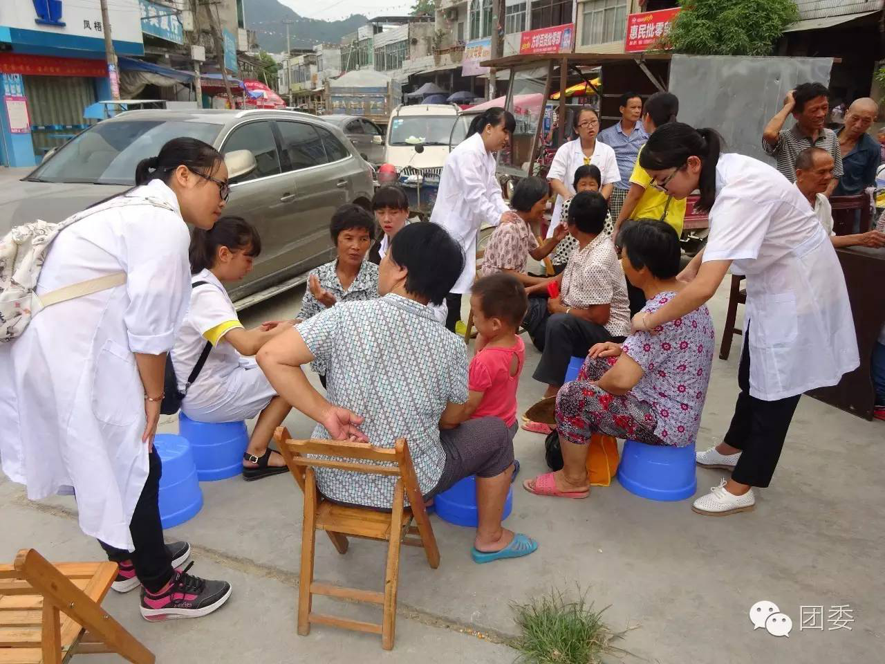 志愿者为村民进行手法按摩