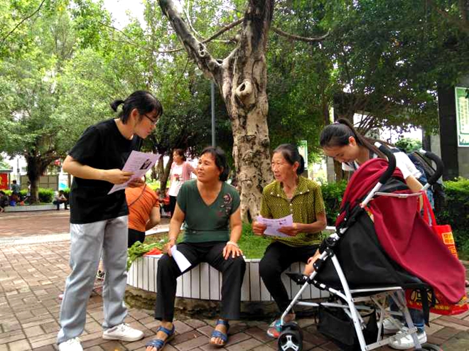 2018年7月15日上午,taptap点点体育2017级中医学二班的同学组成禁毒防艾小队在南宁市仙葫经济开发区东方广场顺利开展了暑期社会实践之“禁毒防艾进社区”活动。此次活动以“青春践行十九大,接力奋斗新时代”为主题,活动开展时,更有李晓梅老师莅临现场指导。