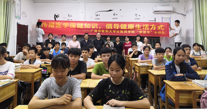 2019年7月12日下午,“梦想号”小分队(以下简称为“梦想号”)在南宁市新蓝天学校开展了主题为“传播医学保健知识,倡导健康生活方式”的暑期社会实践活动。活动上很荣幸能邀请到点点体育基础医学院梁裕芬老师莅临指导,同时该校张桥校长等领导也莅临听课。
