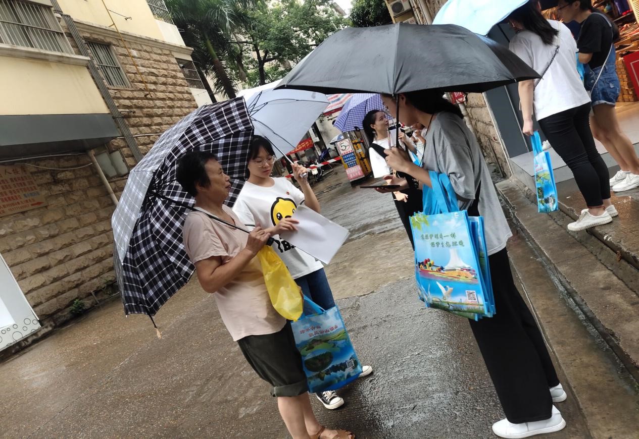 7月8日下午,部分队员们开始进行邕江的水样实地调查和进行环保工作。期间对当地的居民进行了走访和做了问卷调查,了解了附近居民对实地环境情况的认识程度,居民的环保意识。居民十分配合、支持队员们的工作,并对他们的行动表示鼓励和赞赏。晚上,小分队队员统计分析调查问卷的各项数据、总结调查结果,为第二天的宣传工作做好准备。