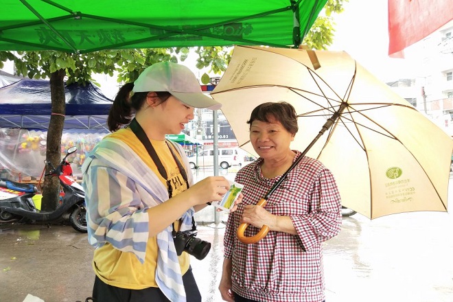 陈文雅老师向居民介绍藿香正气液