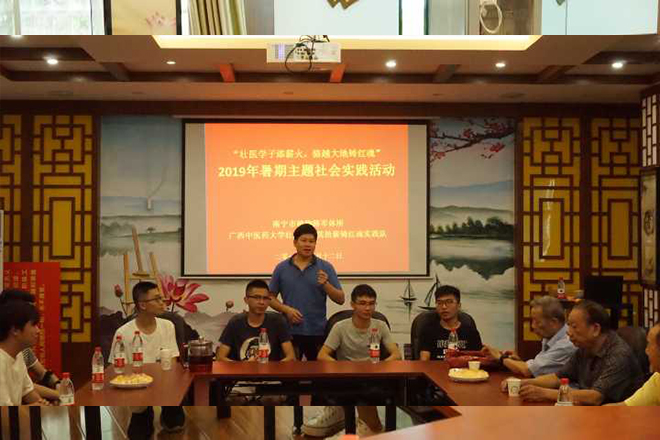 2019年7月12日,由taptap点点体育壮医药学院团委学生会学生干部组成的壮医药学院拾薪铸红魂实践队在南宁市植物路军休所开展了第一阶段暑期社会实践活动,即开展相关主题座谈会。此次座谈会有幸邀请到王世超、邓道生、程传善、谭开先、黄建新、李志光六位德高望重的退休干部出席,为实践队员们讲述珍贵经历,并给予谆谆教诲。