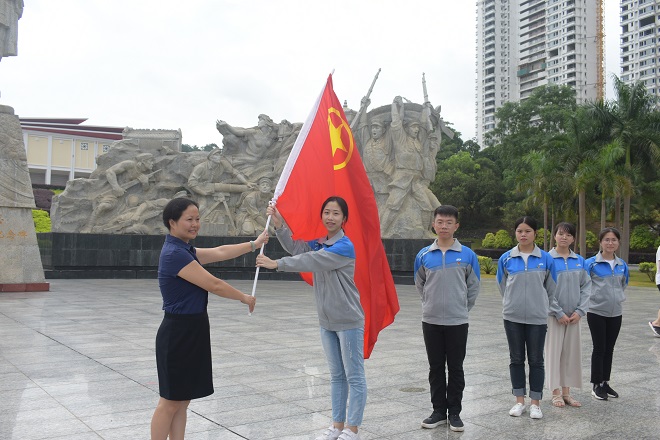 授旗仪式结束后,大家一同进入广西革命纪念馆内参观。在本次参观过程中,蒋娴老师为大家讲解了百色起义,讲解中融入一些提问,让同学们重新认识了此次工农武装割据的光辉实践;王玉洁老师带领同学们清唱一曲游击队战歌,在铿锵战歌中体验革命先辈的睿智与英勇。此外,本次活动中,还有多位同学担任志愿讲解员,结合当代青年的使命与责任,说出自己对革命精神的感悟与理解。活动结束,老师和同学们相互分享自己的感悟与收获:即享受当今幸福生活的同时,要勇于担当新时代的使命与责任。
