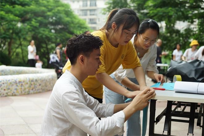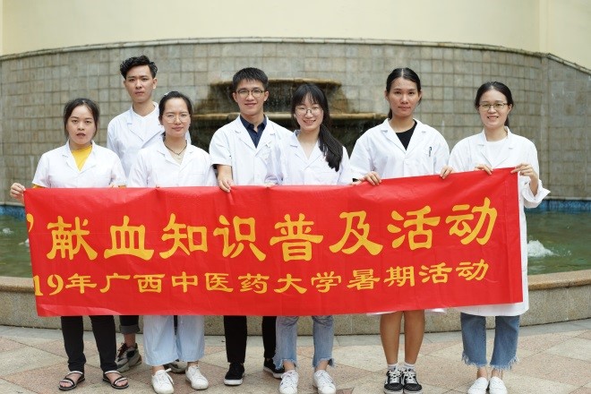 7月21日,点点体育2018级研究生学院“献血为盟”小组一行到南宁市凤岭山语城小区开展以“青春心向党,建功新时代”献血知识普及为主题的暑期社会实践活动。本次活动由2018级研究生贾梦云、黄兆欣、李南希等7名同班同学一同参与。