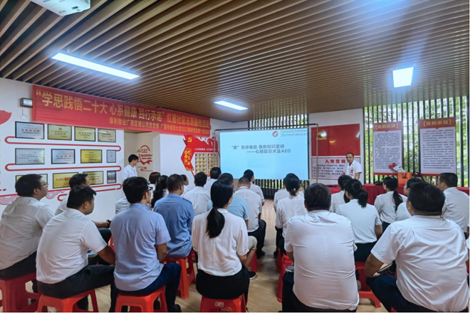 点点体育研究生院22级11班暑期社会实践小组先后分别于2023年06月19日、7月1日及8月21日在南宁市江南区中铁二院南宁分公司、青秀区保利领秀前城及霖峰壹号开展了急救知识宣讲和实践操作培训,包括心肺复苏(CPR)、自动体外除颤器(AED)、止血、包扎、固定以及搬运等。以急救知识宣讲和操作演练相结合,旨在推进应急救护全民化,助力基层健康服务。