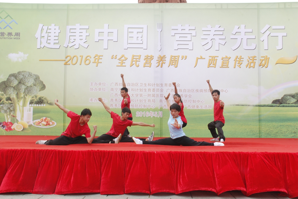 2016年5月14日,广西区第二届“全民营养周”启动仪式在南宁市南湖公园陈列馆广场举行,今年的活动以“平衡膳食,营养健康”为宣传主题,以“健康中国,营养先行”为宣传口号。