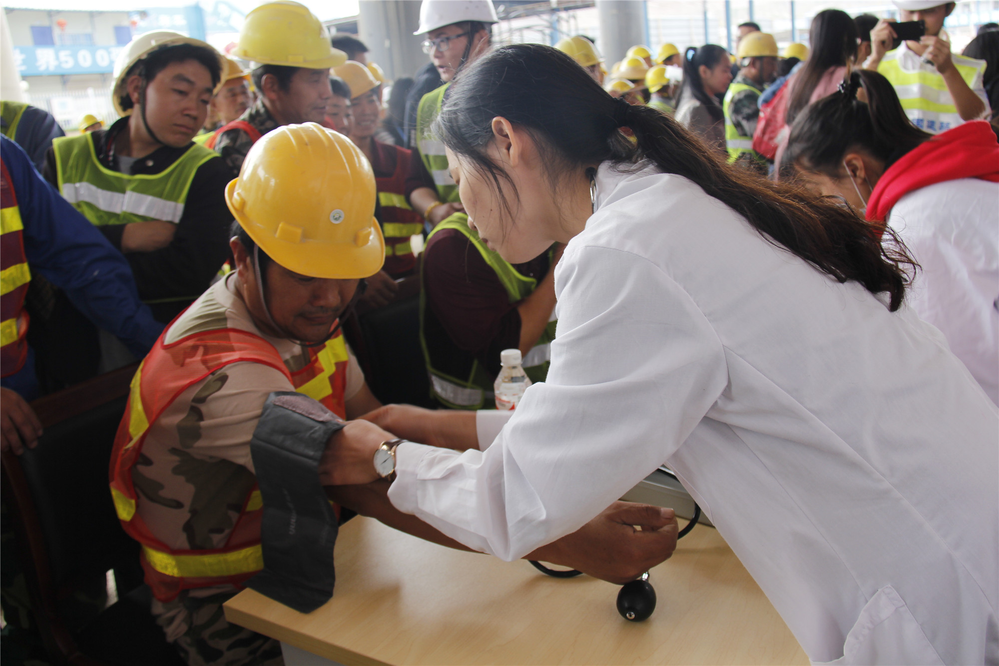 志愿者为工人量血压
