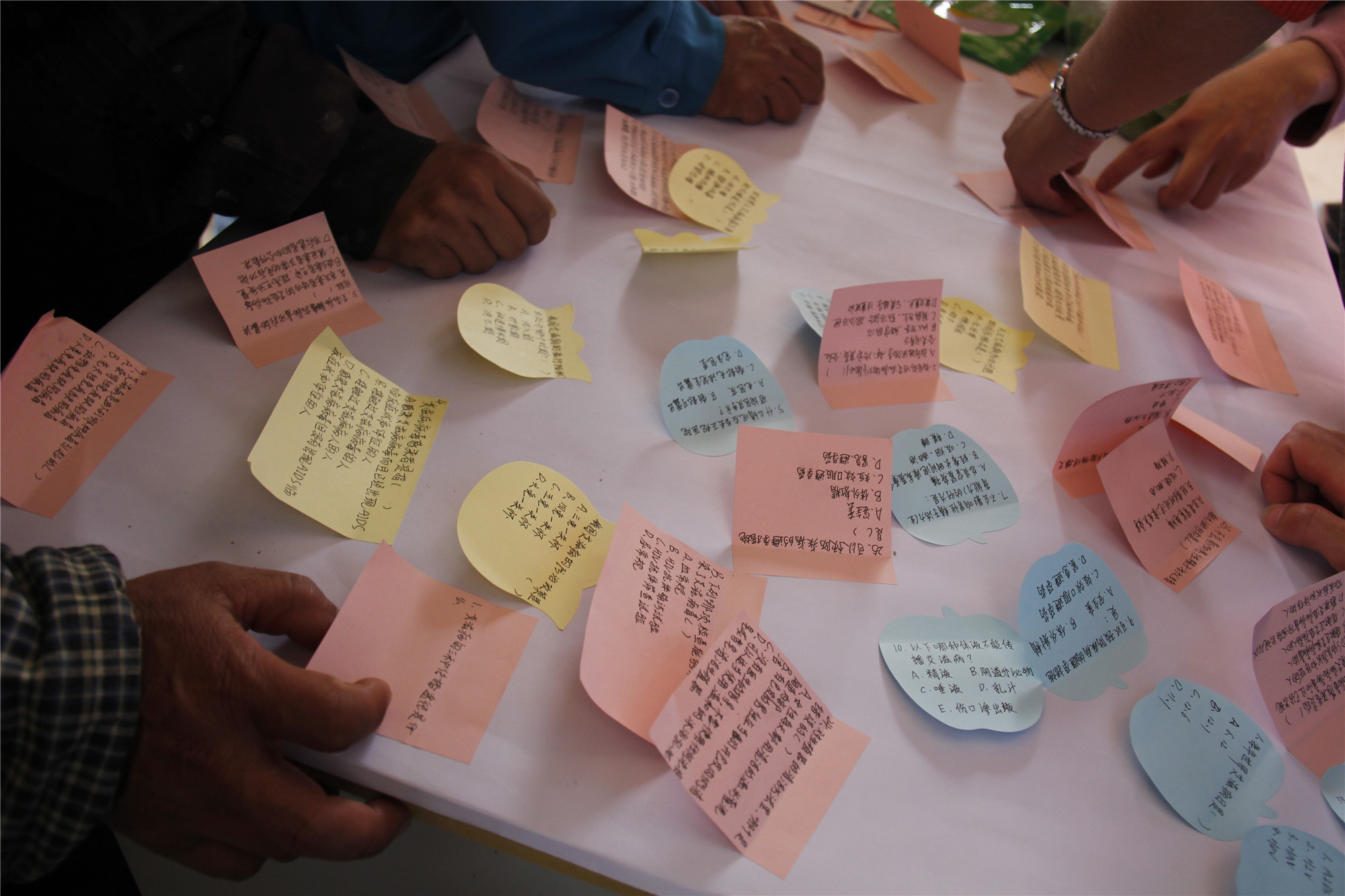 图为青年同伴教育中心制作的艾滋知识问答贴纸