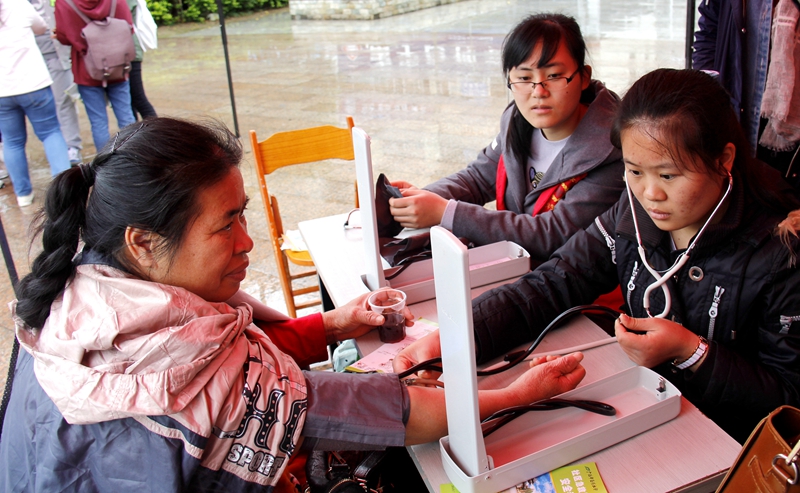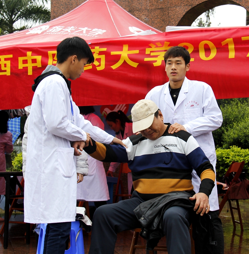在现场,志愿者们为居民们进行了量血压、艾灸、拔罐、手法等义务治疗,得到了居民们的一致好评。他们都认为志愿者们很专业,都希望我们多多开展此类活动并表示愿意参加到活动中来。