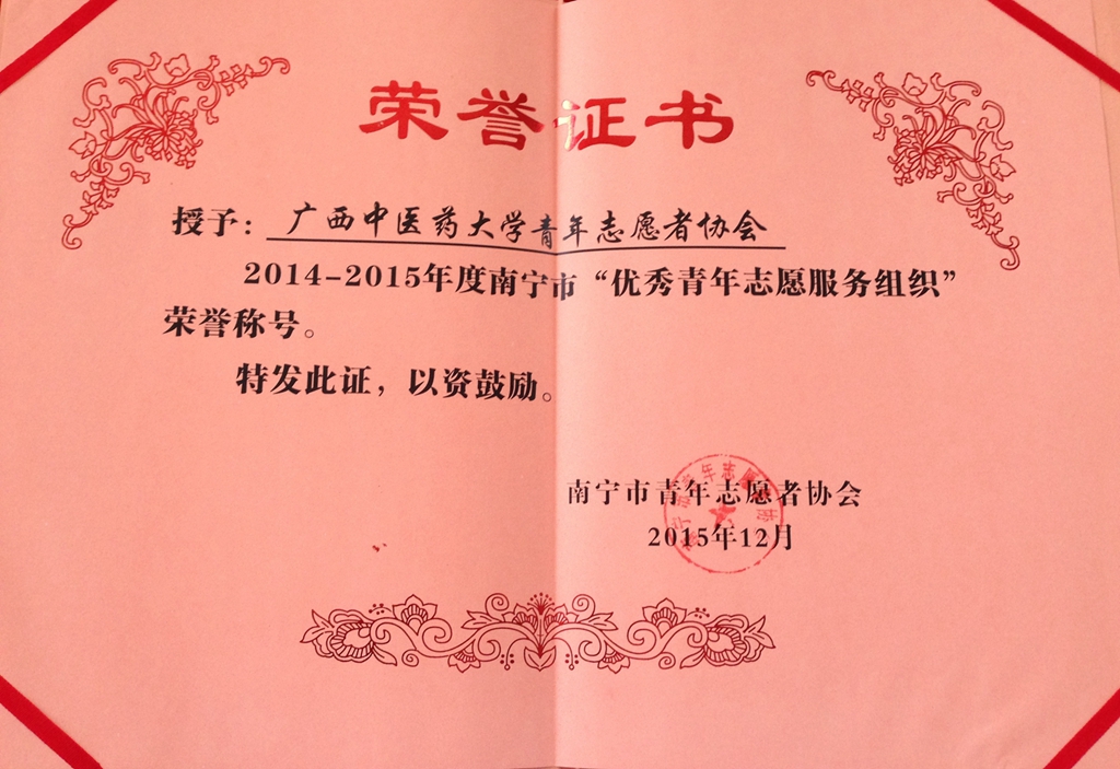 点点体育青年志愿者协会荣获2015年南宁市“优秀青年志愿服务组织”称号