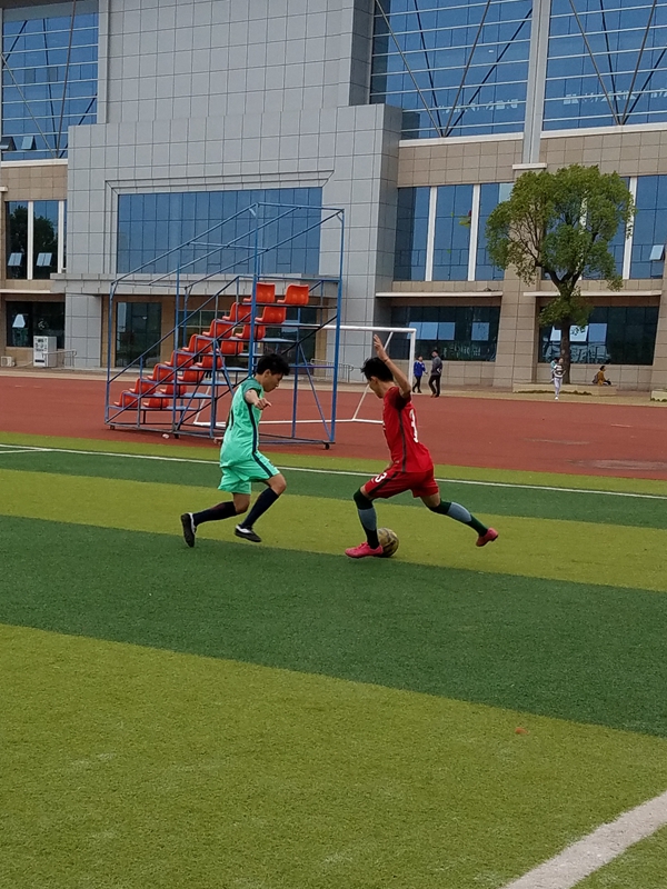 经过中场休息,双方的体力和士气都有了些恢复。下半场高职队的攻势猛烈,前锋不断上前逼球。赛院队的后卫失误,让高职队前锋抢到球,单刀杀进赛院的近区,以一个刁钻的射门,球飞向了死角,球进了!全场沸腾,高职队把比分扳平了。进球后的高职队信心大增,不过赛院似乎不给高职有反攻的机会,一直控制对方的球,最终高职队的球都没有过半场,非常被动。赛院队的前锋在赛院的中后场中来了一记大脚抽射,球直逼球门,划出一道美丽的弧线进入门框内。