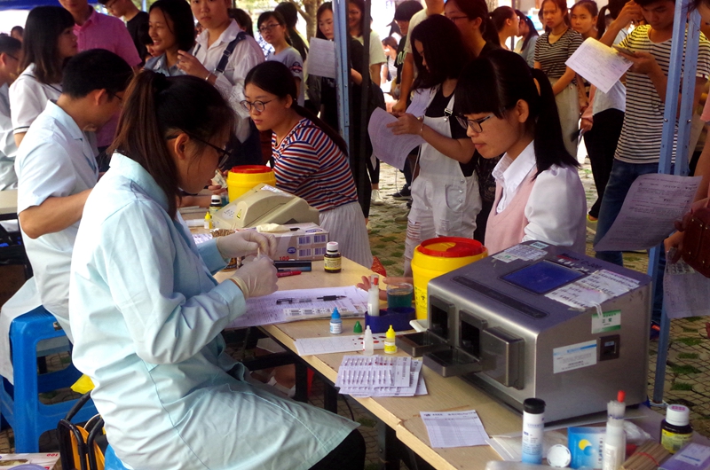 有些小紧张的采血现场