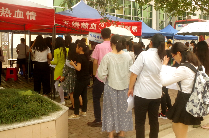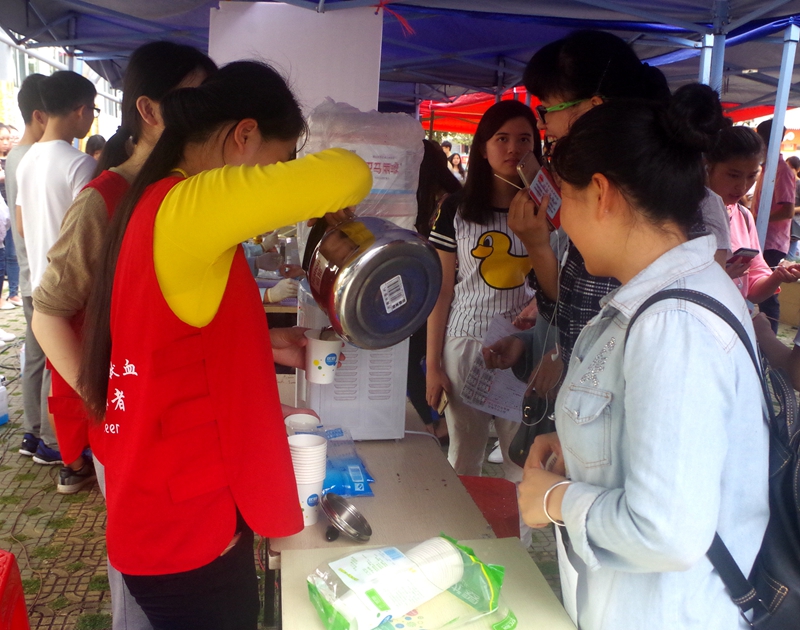 上午10时,四辆血车缓缓驶入校园。志愿者们协助医务人员紧锣密鼓地展开一系列的检查工作并为前来献血的同学解疑答惑,一切都井然有序地进行着。很快,烈日当空,太阳伞仿佛都抵不住这烈日的烘烤,但献血点依旧排着长龙,志愿者们细心地安排同学们到阴凉处躲避酷暑。每一位献完血在一旁休息的同学的脸上都洋溢着温暖的笑容,这种奉献爱心的行动给他们带来满满的幸福感和自豪感。脸上的汗水与笑容都是她们无私奉献的见证。当然,血站精心为她们准备了一个小小的礼品作为纪念。