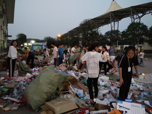 下午5点,志愿者们在五合食堂门口集合签到,有条不紊地准备好所需物品。接着,志愿者们分成几个队伍,拿着麻袋向各个宿舍出发。志愿者们轻轻地敲开每一扇门,礼貌的询问宿舍成员是否有废品需要回收,遇到没有人在的宿舍,志愿者们贴心地贴上便利贴提醒宿舍成员已经进行回收。夜幕降临,志愿者们忙碌的身影还在校园中穿梭。一部分志愿者把废品拿到场地,进行废品分类。志愿者们不怕苦,不怕累,一直坚持到活动最后一刻。最后,活动以志愿者们一张温馨的大合照结束。这是一个爱的开始,绿色回收的启航。
