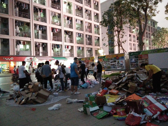 志愿者进宿舍回收废品