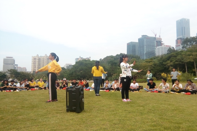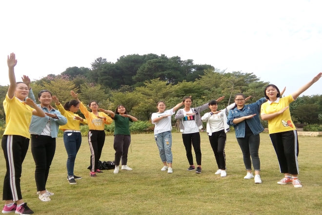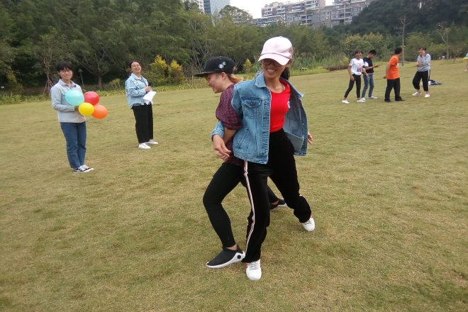 中午,志愿者们兴高采烈地从仙葫校区出发,到达石门森林公园的指定地点后,志愿者们积极地布置会场。素质拓展活动内容分为小组游戏和经历分享两个环节。在活动过程中,志愿者们以小组形式进行了纸杯传水、心心相印和7人8足等团队合作游戏。组员们相互讨论游戏的新方案,给游戏增添了不少乐趣。随后在经历分享环节,志愿者们十分踊跃地用歌唱献艺或手语表演的方式分享着亲身体验,令人感触颇多。活动的现场,大家兴致昂然,气氛融恰。傍晚,大家伴着夕阳的余晖,意犹未尽地乘车返回校园。