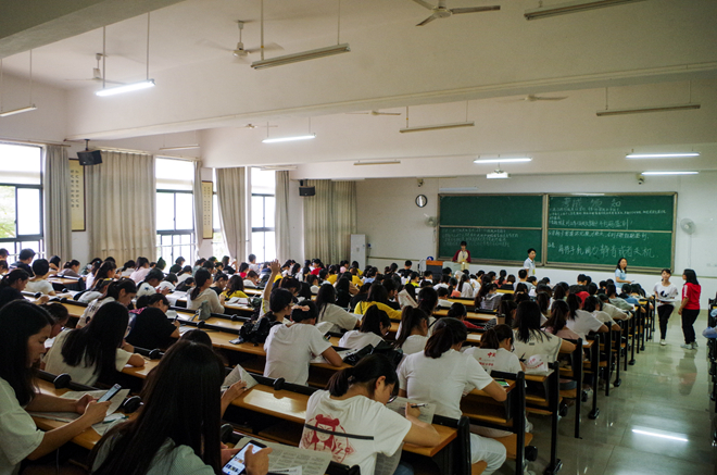 工作人员布置好会场后,参加竞赛的同学们陆陆续续来到考场,听从安排有序就坐。工作人员开始宣读竞赛规则以及注意事项,竞赛也随之开始。竞赛开始后,同学们争分夺秒的同时不失镇定,下笔从容,人头攒动的教室里充斥着纸张与笔尖激烈摩擦的声音,空气中存在着一股强烈的火药味。随着时间的推移,长篇累牍的竞赛题被逐个击破,不少同学提前完成了这份试题,露出自信的微笑,在工作人员处完成签到后,信心满满地走出考场。所有参赛的同学完成题目后,竞赛正式落下帷幕