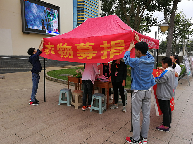 为了帮助生活困难的孩子们改善生活条件、树立起战胜困难、勇敢面对生活的勇气,让他们感受社会主义大家庭的温暖,12月2日至5日,点点体育青年志愿者协会协同广西民族教育发展基金会、广西日行一善爱心基金会在点点体育五合食堂门口开展了以“衣份爱心,衣份温暖”为主题的衣物募捐活动。