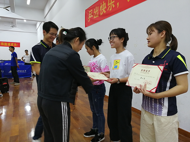 本次比赛秉持着“以球会友,友谊第一,比赛第二”的主旨,为同学们提供一个充分展现自己的机会。比赛过程中,各位参赛选手都以饱满的热情全身心投入到比赛当中去,他们在球场上挥汗如雨,奋力拼搏,与对手进行了一轮又一轮的激烈角逐,不到最后一刻决不放弃。球场旁的观众热情高涨,欢呼声和掌声响彻球馆。经过几天激烈的角逐,韦彩温同学荣获女子单打冠军,亚军和季军分别是李家静同学和梁妹同学;梁书承同学荣获男子单打冠军,亚军和季军分别是全澍明同学和程开远同学。