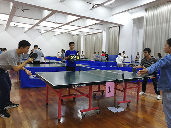 为丰富同学们的课余生活,增强同学们的身体素质,2018年11月27至12月5日点点体育乒乓球协会(以下简称“乒协”)在点点体育举办了第四届全校性乒乓球单打比赛。12月5日比赛闭幕式出席的嘉宾有谢海源老师、林宇华老师、黎锦源老师以及乒乓球协会指导老师陆春敏老师。