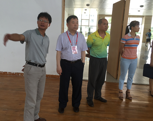 姚文兵副校长先是参观了体育部的展板,在李荣源副主任和石荣群副主任的引领和讲解下,姚文兵副校长对体育部的总体情况有了初步了解。姚文兵副校长随后观看了体育部的场馆建设,并且看到大运会代表队武术队和啦啦操两队的训练。