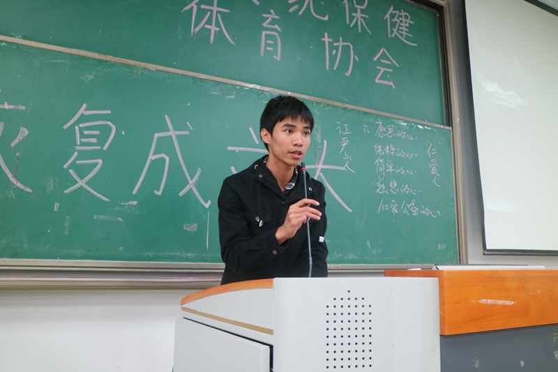 莅临大会的有协会的指导老师兰兰教授和历届的协会会长,同时,还有来自其他兄弟社团代表。在老师致辞这一环节中,兰兰教授为我们生动地讲解“五心”为何物;希望每个同学都拥有这“五心”——感恩的心、纯粹的心、简单的心、慈悲的心以及仁爱公益的心;鼓励协会干部积极组织广大会员同学积极参与三义社会慈善活动(义诊、义务中医保健手法按摩、义务教授传统养生功法),以修练“善行养生”之气。