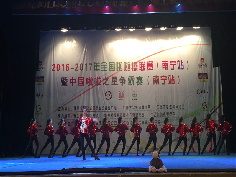 由国家体育总局体操运动管理中心、中国大学生体育协会主办,广西啦啦操委员会承办的2017年全国啦啦操联赛(南宁站)的比赛经过两天的激烈角逐,于6月11日晚圆满落下帷幕。本次比赛历时两天,共有189支参赛队伍,参赛人数达到4500余人次。