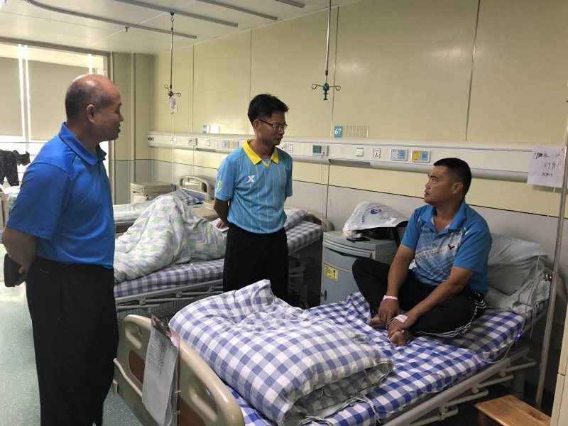 体育部领导探望慰问住院冯老师 发布时间:2018-06-05 12:07:51 浏览次数: 次 【字体:小 大】 6月5日上午,体育部主任李荣源、副主任石荣群、办公室主任吴国天一行走访慰问了正在瑞康医院住院治疗的我部教师冯强同志。 在病房,李荣源、石荣群仔细询问了冯老师的身体情况,叮嘱冯老师一定要按照医生要求,积极配合治疗,争取早日康复。冯老师对体育部领导的关心表示了衷心的感谢! 分享到: 【打印正文】