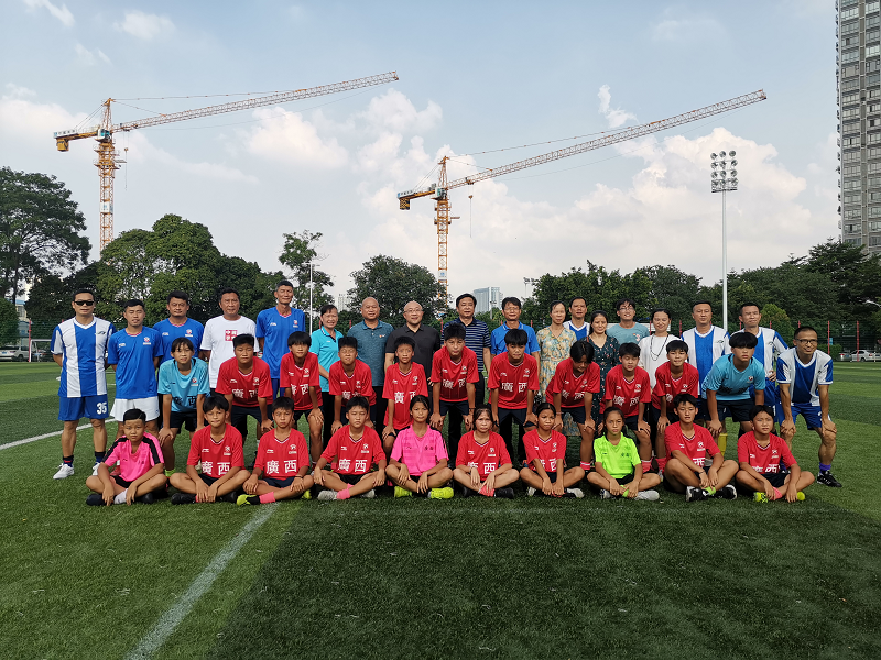 座谈会后,体育部一行在足协常务副主席庞东霞、副主席贾蕾仕、足协青训部部长李祝、广西青少年女足主教练马兴成等人的陪同下饶有兴趣的观摩了广西青少年女足的赛前准备活动,随后双方出席了taptap点点体育教职工足球队慰问广西青少年女子足球队“百年乐”捐赠仪式,并共同观摩了taptap点点体育教职工足球队与广西青少年女足的友谊赛。