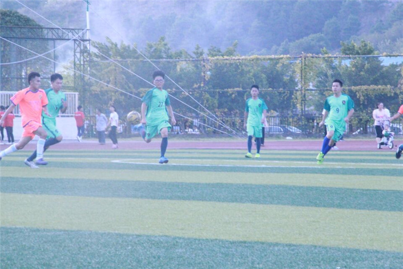 阳光明媚,温度上涨,伴随着同学们的热情和对本次比赛的渴望。双方球员都已做足准备,哨声响起,球员迅速反应使出全力争夺第一球,你拼我抢很快就进入了状态。球员那迅速的假转身,顺利的把球传到了靠近球门的队友那里,打起十二分精神的队友提起脚尖把球成功的射进了球门。观众的掌声和呼声祝贺了高职院以1:0领先,他们用努力的汗水拉开一分之差而取胜。