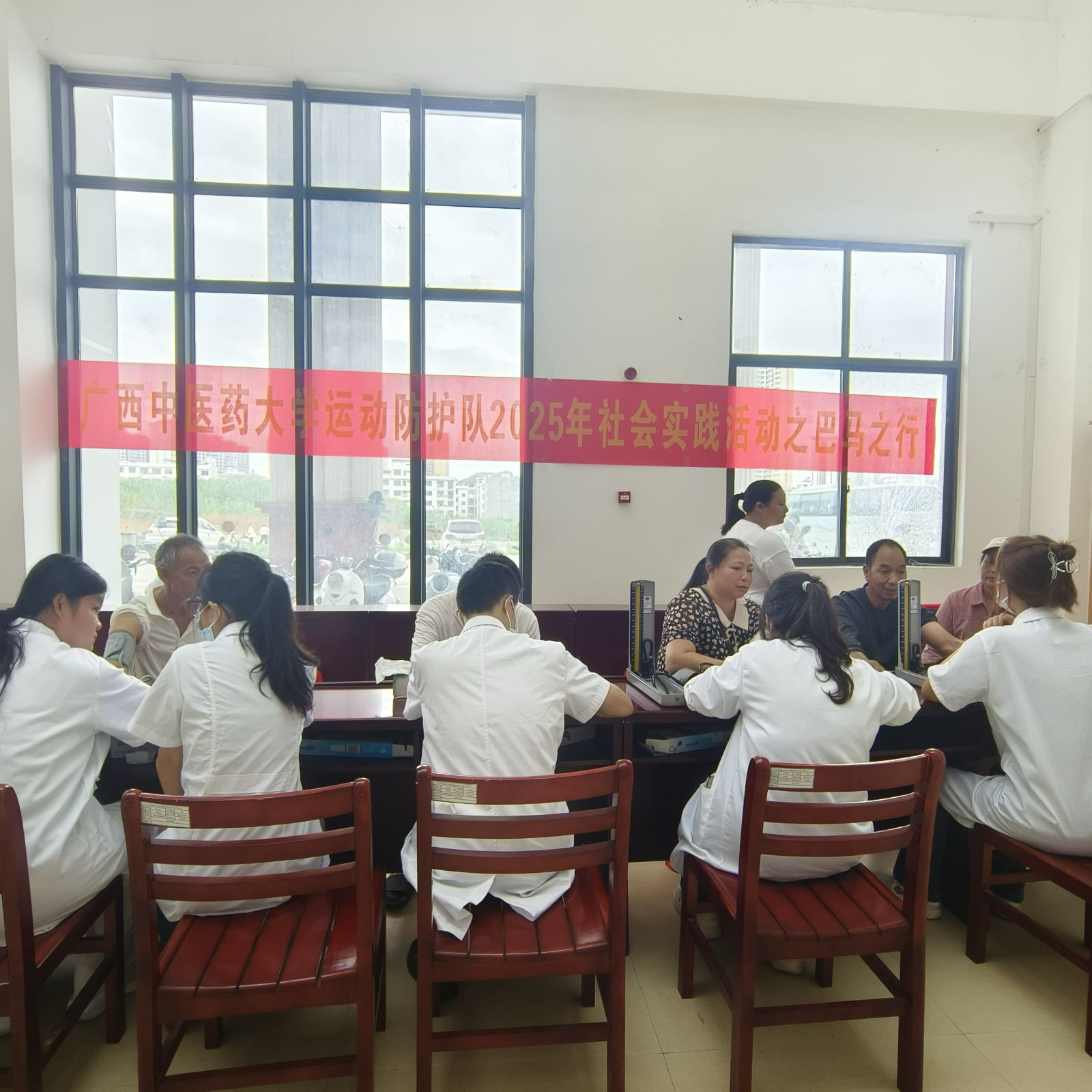 学习之余,运动防护队充分发挥自身专业特长,在医院门诊大厅开展了大型义诊活动。队员们热情满满地为前来咨询的群众提供服务,他们凭借扎实的专业知识和娴熟的操作技能,运用手法按摩、艾灸、刮痧等中医传统疗法,帮助群众缓解身体不适。同时,队员们还为群众测量血压,耐心解答他们关于健康养生和疾病预防的问题,用通俗易懂的语言为群众讲解日常保健知识,受到了当地群众的一致好评和赞誉,不少群众纷纷表示希望队员们能多来开展这样的活动。