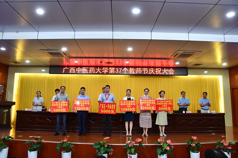 9月10日下午,在仙葫校区图书馆二楼会议厅,全校教职工齐聚一堂,隆重举行“taptap点点体育第37个教师节庆祝大会”。会上,何并文宣读了表彰名单,学校领导为获得2020年度优秀校级督学、2020年度学校记功人员、2020年度学校“先进工作者”、2020~2021年度“学生最喜爱的老师”、2020年学校优秀辅导员等共121位获奖者颁奖。其中,我教研室教师吴国天、覃月泉老师分别获得:2020教学成果一等奖、第八届全区高校青年教师教学比赛文科组一等奖。