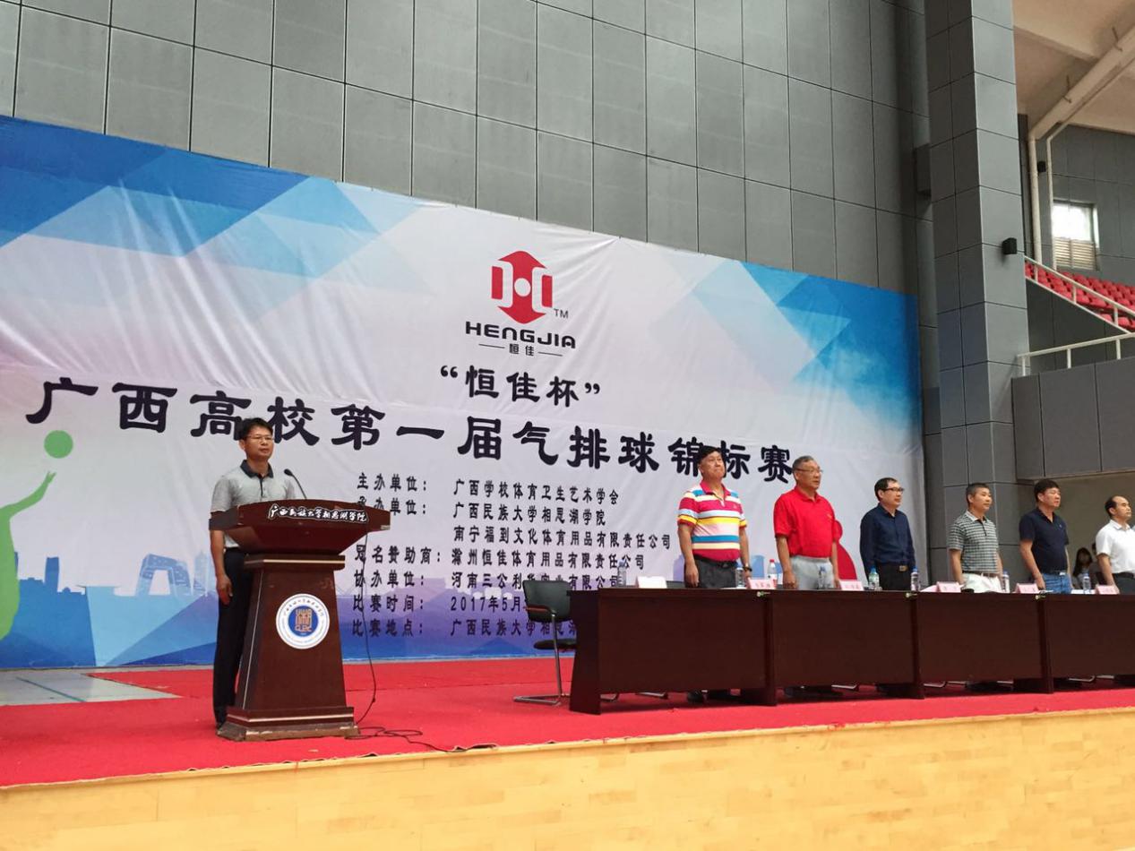 由广西学校体育卫生艺术学会主办,广西民族大学相思湖学院承办的“恒佳杯”广西高校第一届气排球锦标赛于2017 年 5 月 18 日—21 日在相思湖学院举行。经过三天的激烈角逐,比赛于5月21日下午圆满落下帷幕,并于广西民族大学相思湖校区篮球馆举行颁奖仪式及闭幕式。