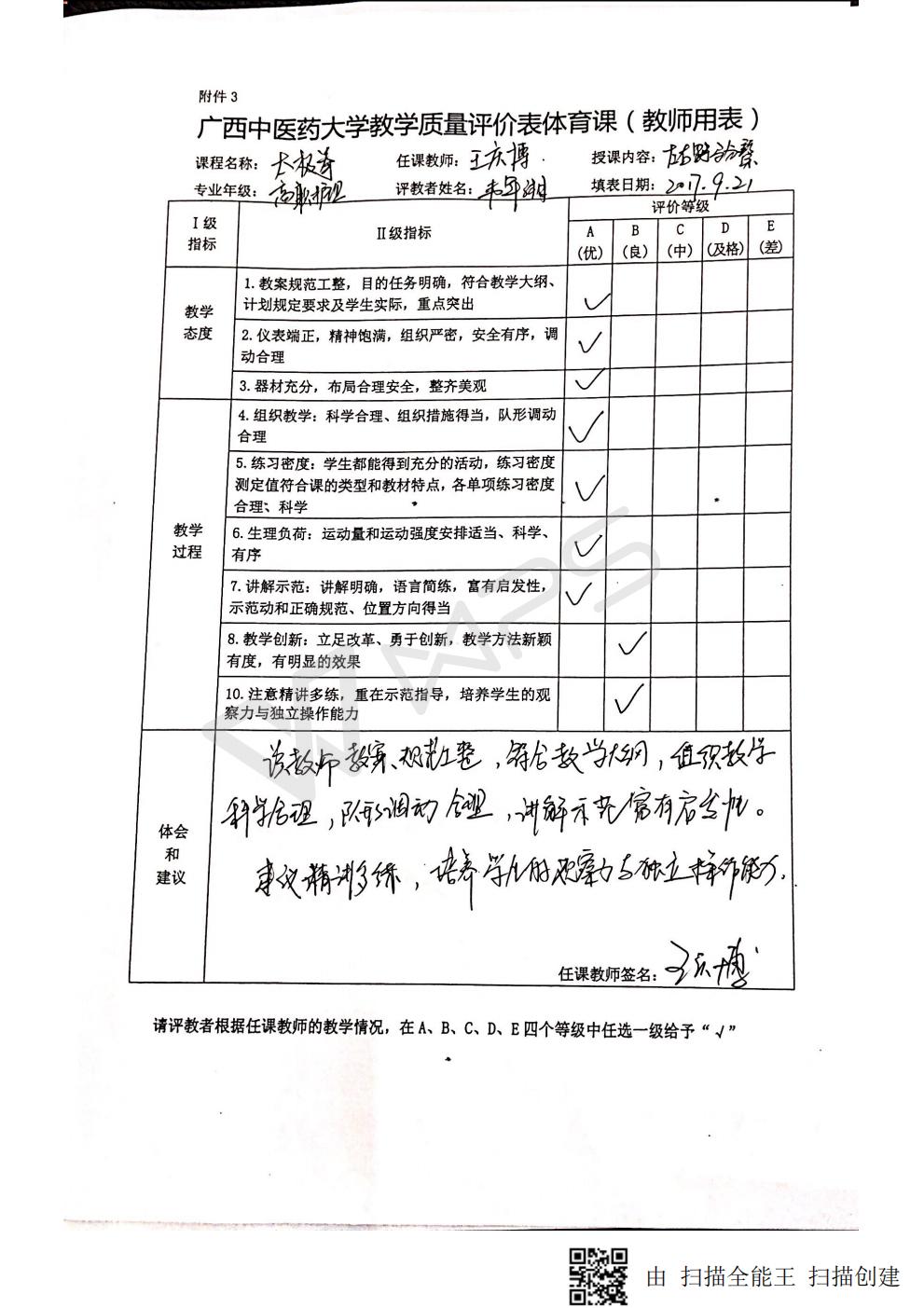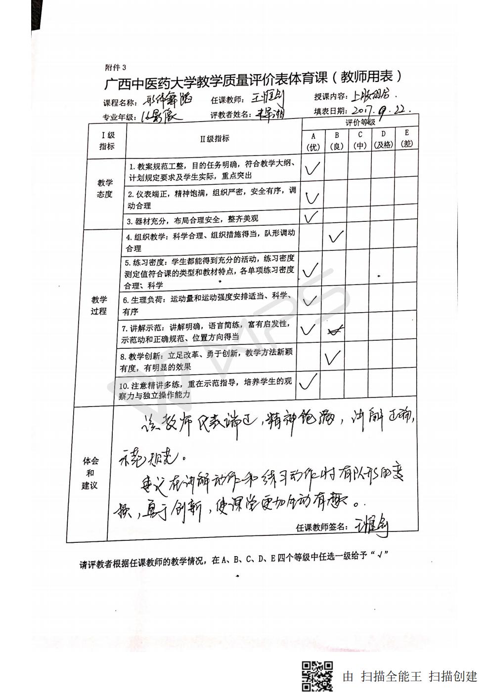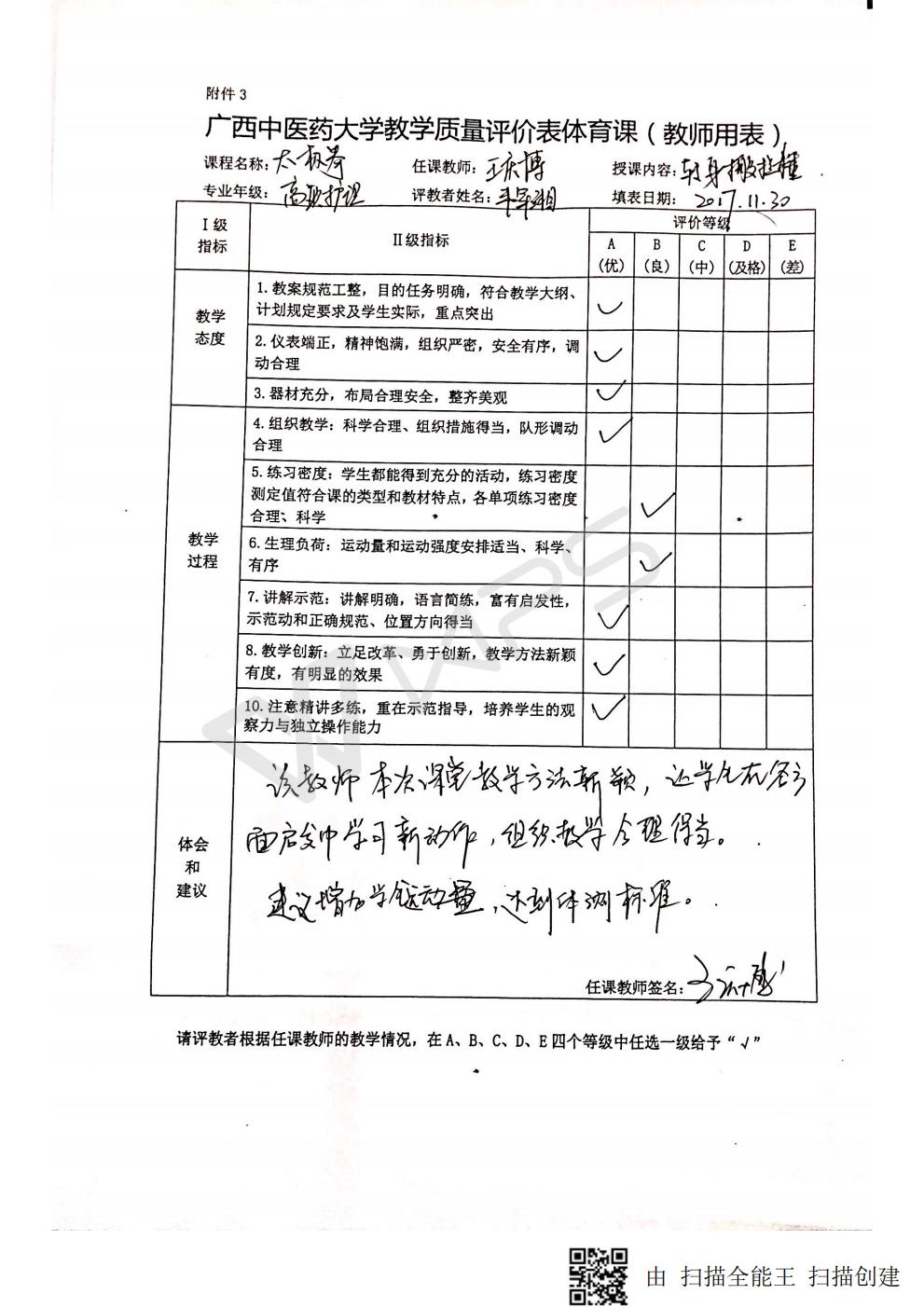 2017-2018学年教研室教师听评课记录(韦军湘)